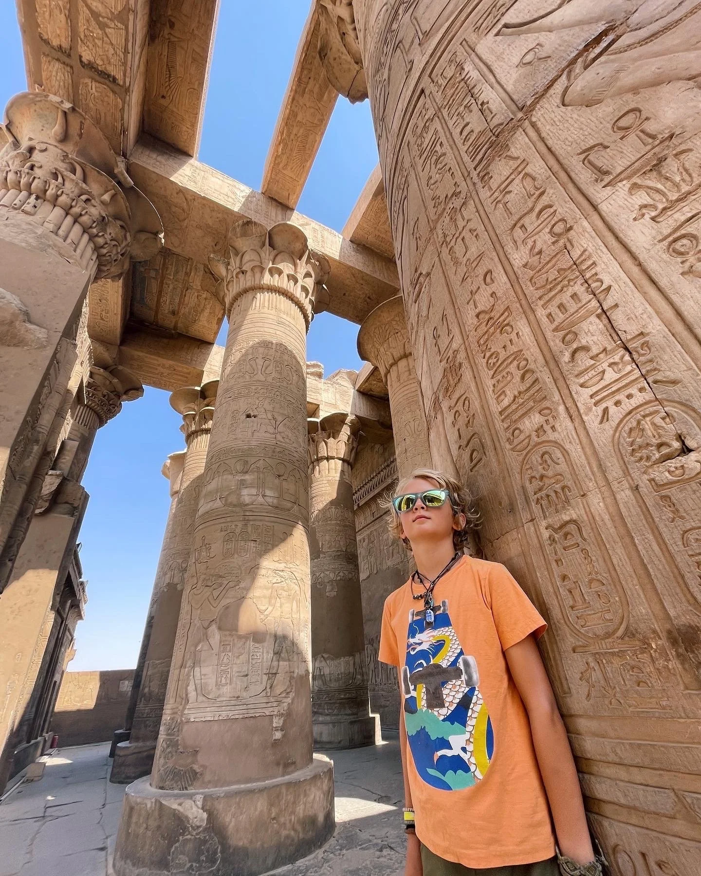 The next day we headed to Luxor, with a quick 6-hour delay at the Cairo airport and an introduction to the complete cluster that is EgyptAir;) where we boarded our dhibaya and started our journey up the Nile. When you’re traveling with kids you quickly get used to the terrified faces of fellow travelers as you board a plane, sit down at a restaurant, plop down by the hotel pool or, in this case, board a 16-passenger boat for the next 5 days. You can feel everyone tense, calculating if their vacation is set to be ruined by noise and chaos, and you can’t help but wonder if you made the right choice, committing to 5 days on a boat in the Nile river with no real movement outlet other than 110 degree visits to old ruins and temples. Lucky for all of us, the boys once again exceeded both our and the 12 passengers expectations out of the water and by the end of the trip they had a dozen new friends and admirers, aged 20-80. We’re quickly being reminded that the most brilliant part of travel, especially travel as intimate as a boat trip, is the cast of characters you meet along the way. There was the wonderful Italian artist Marcello and his high fashion photographer wife who had been married a week before. There was the British broadcaster who just days before had been sending in audio clips around the death of the queen. There was the Egyptologist who, the very first morning during our visit to a temple in Esna, discovered proof of his long held theory that ancient Egyptians utilized pictographs to make diphthong, which he photographed in a cartouche spelling ‘Autocrat Caesar’ on one of the pillars. His wife who was an author, poet, television producer and also happened to work in AI development. There was a Portuguese family that we fell in love with from day one; a beautiful, brilliant mother, Michelle, and her 3 children, aged 19, 24 and 27, who were the kind of kids I can only hope the boys grow up to be like. Each was so kind, engaged, intelligent, respectful and oh so much fun. I’m not sure if the boys were more in love with the beautiful Maria, Martim, who would spend hours playing games and joking around with them on deck, or Joao who loved football (soccer) as much as Holden and would kick the ball around on the boat and then join us and the crew for pickup games whenever we could find a spot of land. That spot usually consisted of a spit of sand on an island in the middle of the river, surrounded by grazing water buffalo and donkeys and inevitably covered in water buffalo poop, trash and mud…but it didn’t matter because everyone was so happy to be at play. And then there was the crew. Oh yes, and the dozen Egyptian boys and men (women aren’t allowed to work in Egypt) who had the best smiles, biggest hearts and goofiest, playful underside that the boys brought out.